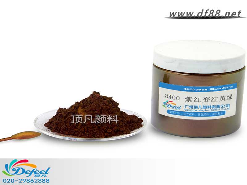 8400 紫紅變紅黃綠變色龍粉可應(yīng)用于涂料、油墨、塑料各產(chǎn)業(yè),產(chǎn)品之設(shè)計(jì)大多以室內(nèi)(無紫外光之環(huán)境)與室外(有紫外光之環(huán)境)有顏色變化為訴求。