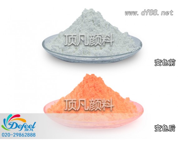 頂凡感光變色粉又稱光變粉、光變顏料、光變色粉等GB005光變橙光變粉其變色原理為吸收特定波長的紫外線光源,藉由該光源之能量而產(chǎn)生顏色變化變?yōu)槌壬?dāng)特定波長的紫外光源不在時(shí),即恢復(fù)原來的白顏色。